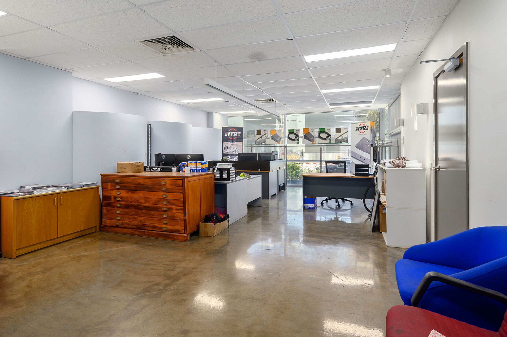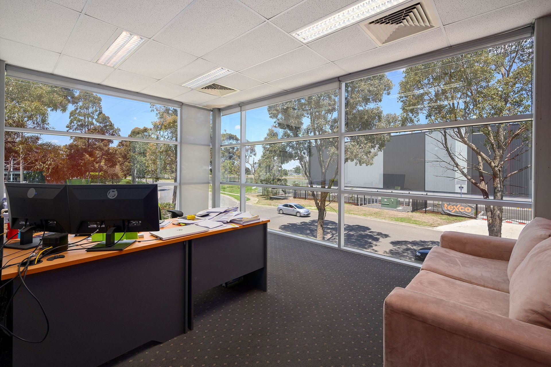 - Carpeted and air-conditioned office space